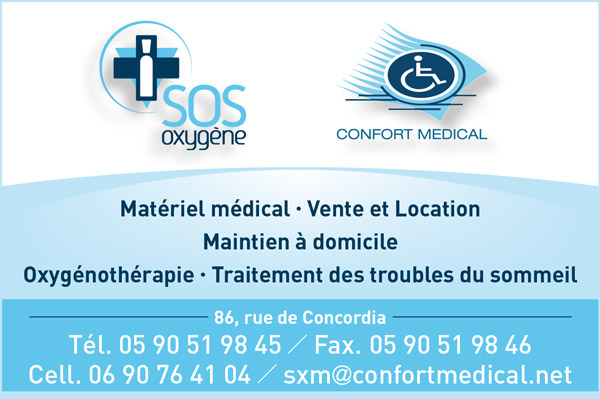 CONFORT MEDICAL SAINT MARTIN Saint Martin Contact Information 86, Rue de Concordia - Concordia 0590 51 98 45 0690 76 41 04 0590 51 98 46 sxm@confortmedical.net http://www.sosoxygene.com Get Directions By car By public transit Walking Bicycling Description Mots clés :troubles du sommeil, Saint Martin, Oxygénothérapie, oxygène, Matériel médical, confort médical saint martin Contact us Votre nom * Votre adresse de messagerie * Objet Votre message Je consens à ce que Teledom collecte, traite, stocke et utilise mes données personnelles en lien avec ce formulaire afin de pouvoir répondre à ma demande par la réception d'informations par e-mail. Veuillez consulter nos conditions d'utilisation pour plus d'informations.* Fiches similaires PHILIPSBURG PHARMACY Drugstores Charles Vogesstreet 4. - Philipsburg 542 3001 Sint Maarten SCM KINEPT Physiotherapists - Lorient 05 90 27 67 86 Saint Barthélemy KOSMO’Z INTERNATIONAL DVD Rentals 164, Route Nationale. - 06 90 22 81 61 Saint Martin TROPIXX 105.5 FM Radio Stations A.T. Illidge Road 106. Suite 2. P.O. Box 5344. - Philipsburg 543 2200 Sint Maarten