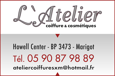 L'atelier Coiffure Saint Martin Contact Information B.P. 3473. Howell Center - 97150 Marigot 05 90 87 98 89 ateliercoiffuresxm@hotmail.fr Get Directions By car By public transit Walking Bicycling Description Contact us Votre nom * Votre adresse de messagerie * Objet Votre message Je consens à ce que Teledom collecte, traite, stocke et utilise mes données personnelles en lien avec ce formulaire afin de pouvoir répondre à ma demande par la réception d'informations par e-mail. Veuillez consulter nos conditions d'utilisation pour plus d'informations.* Fiches similaires OCEAN SPIRIT - Saint Barthélemy TRIPLE D GROCERY Supermarket Airport Road 61A. - Simpson Bay 545 3669 Sint Maarten SAS OLIVIER DAIN Building Design Offices & Technicians Centre Commercial de l’Oasis. - Lorient 05 90 27 87 94 Saint Barthélemy ALAIN LAGIER Insurance Companies BP 4222 - Marigot 06 90 50 97 64 Saint Martin